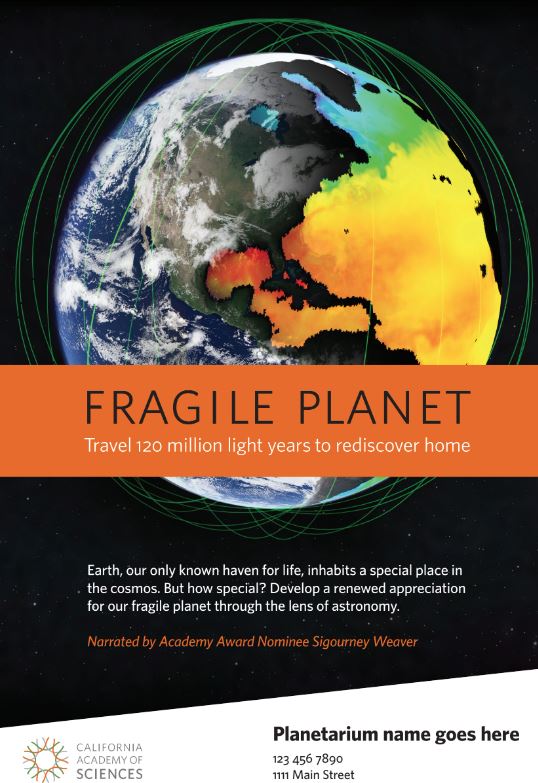 Fragile Planet gives audiences an astronaut’s view of Earth, highlighting Earths unique regions. The journey then continues to the Moon, Mars, and beyond the Milky Way to search for habitats that might host extraterrestrial life. The show’s theme — that Earth is the only known haven for life, and thus is important to protect echoes the themes of biodiversity and sustainability.